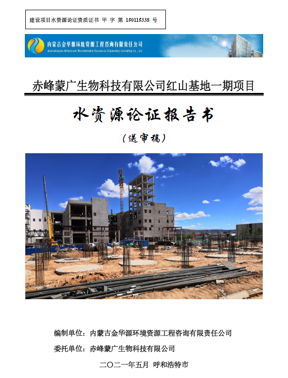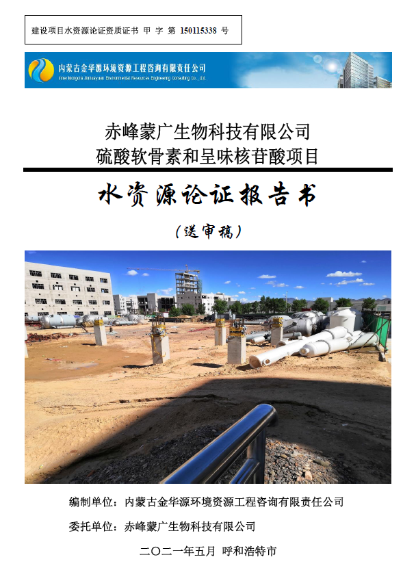2021年6月9日,由我公司編制的《赤峰蒙廣生物科技有限公司紅山基地一期項目水資源論證報告書》及《赤峰蒙廣生物科技有限公司硫酸軟骨素和呈味核苷酸水資源論證報告書》雙雙順利通過赤峰市水利局審查。