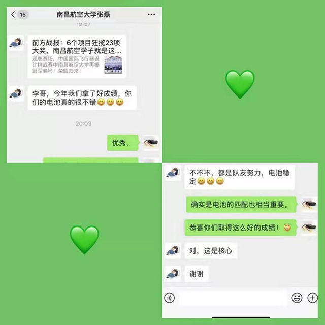1. 哇哦~看了上面的聊天記錄,簡(jiǎn)直開心到飛起,原來是使用了諾信電池,“隊(duì)友努力、電池穩(wěn)定、匹配度高”,這是核心!對(duì)此,諾信電子作為合作伙伴,向你們表示祝賀,瘋狂為你們打call!