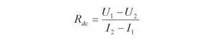 電池滿充電后,以0.2C放電10s,測試電壓為U1,電流I1.然后以1C放電1s,此時電壓為U2,電流I2.那么電流直流內(nèi)阻為: