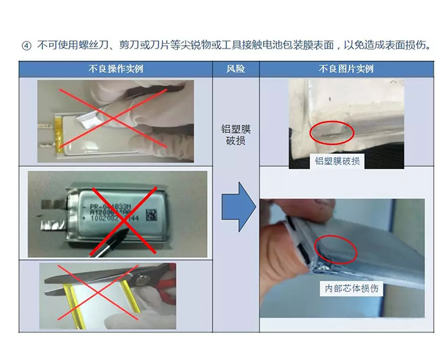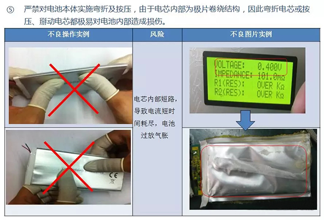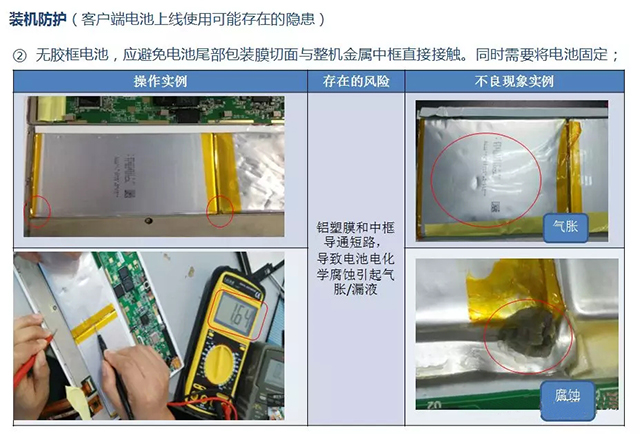 2.電池外包裝比較薄弱,電池較軟,電池受到到外部機械力、彎折等情況下可能導(dǎo)致電池密封性缺失,導(dǎo)致電池?zé)o法正常使用。