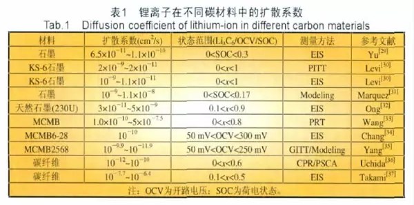 而Sawai等在采用交流阻抗和電位階躍對(duì)不同空隙率石墨材料的高倍率性能研究后提出了不同的看法,認(rèn)為決定石墨負(fù)極快速充放的因素并不是鋰離子在固體中的擴(kuò)散系數(shù),而是石墨電極中的空余體積,即石墨的孔隙率,他們還認(rèn)為石墨電極的倍率容量受到鋰鹽在電極中所含電解質(zhì)溶液傳輸?shù)南拗?。因此,電解質(zhì)和石墨孔隙率的適當(dāng)選擇可以改變石墨的大電流充放電行為。