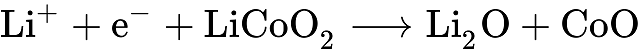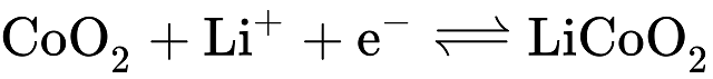 摻雜鋰的氧化鈷襯底中的正極(負極)半反應為