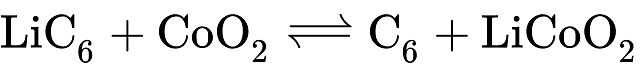 放電過程中,鋰離子從負電極移動(通常是石墨=“C6"),當電池正在充電時,鋰離子和鋰離子會發(fā)生相反的變化,如下所述:通過電解質到達電解質的正極(負極)(形成鋰化合物),而電子則沿相同方向流過外部電路。電子以較高的凈能態(tài)返回負極,以下方程式說明了化學反應。